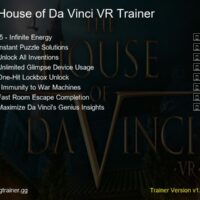 The House of Da Vinci VR Trainer Fling more than +4 options. The House of Da Vinci VR trainer is fully compatible with Steam, Epic, and...