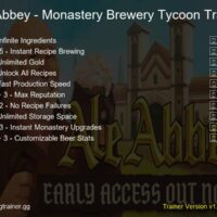 Ale Abbey – Monastery Brewery Tycoon Trainer Fling more than +4 options. Ale Abbey – Monastery Brewery Tycoon trainer is fully compatible with Steam, Epic, and...
